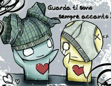 ![]() E se quel giorno non fosse andata così? Ed io non l’avessi mai incontrato? Se i nostri sguardi non si fossero mai incrociati, adesso io starei meno male! Avrei una cosa in meno per soffrire, ma se è vero ciò che dicono, che la sofferenza aiuta a crescere, allora io dovrei essere morta già dieci volte. Beh non mi sono presenta, io mi chiamo Laura, ho 14 anni, sicuramente: "piccola, ancora non può sapere niente della vita" questo direte voi! Ma purtroppo cari lettori devo dire che ciò non è affatto vero! Ne ho passate molte soprattutto nell’ultimo anno! Questo per me un periodo infernale, a volte vorrei poter tornare indietro e non commettere molti degli sbagli commessi in passato, ma si dice di Dimenticare il passato, dimenticare è una parola grossa, noi non possiamo dimenticare, siamo esseri pensanti, e come tali incapaci di dimenticare. ![]() ![]() Da te mi nasconderò, resterò in silenzio, qui, a fi ssarti immobile osserverò ogni piccolo gesto che inconsapevolmente fai sarò invisibile, non ti accorgerai di me Disegnerò ad occhi chiusi quei momenti che ricorderò come se fosse solo un’ora fa e lascerò che i miei pensieri ti tormentino saranno li per farti compagnia se vorrai …se vorrai Fin quando non ti sveglierai, aspetterò guarderò le nuvole distrattamente cercherò quella che ti assomiglia un po’ di più sembra impossibile ma non riesco a stare senza te Disegnerò ad occhi chiusi quei momenti che ricorderò come se fosse solo un’ora fa e lascerò che i miei pensieri ti tormentino saranno li per farti compagnia se vorrai…se vorrai Disegnerò ad occhi chiusi quei momenti che ricorderò come se fosse solo un’ora fa e lascerò che i miei pensieri ti tormentino saranno li per farti compagnia se vorrai …se vorrai. (finley) ![]() ![]() ![]() Non credevo ai sogni fino a quel giorno... ti guardavo e sognavo.. sognavo i tuoi occhi blu, profondi come il mare..dove si intravedevano tt i tuoi pensieri.. ti parlavo e arrossivo.. arrossivo davanti a te.. e poi..e poi..e poi.. ti ho baciato e "ciack" uno schiocco di dita mi ha riportata alla realtà.. ecco questo era il mio sogno..ma quando ho riaperto gli occhi ho visto te, così vicino a me che mi stavi sussurrando all’oreccchio "piccola mia ti amo"..da quel giorno credo nei sogni più di chiunque altro... A volte, quando ami, accade che lo dici nel modo peggiore, perchè se fosse tutto chiaro e limpido non sarebbe amore. Amore è: confusione, passione, disordine, e molto altro di piu’.. E non sempre quando impazzisci dentro sai aspettare: << Perchè io ti amo >> E non senti altro dentro di te. Non sai dire nulla di diverso. E lo dici a te stesso. E lo ripeti ad alta voce. lo urli quasi. Folle come solo un innamorato puo’ essere. Folle. E dopo tutte queste prove ti senti piu’ sicuro. Ed io lo amo, e farei di tutto per difenderlo, e mi sento pronta a farlo contro tutto e tutti, ed è lui la mia vita, era dietro l’angolo, quel angolo dietro il quale non avevo ancora guardato. E succede qualcosa, arriva qualcuno. Passato contro futuro, amore, pasticci, confusione, lacrime, paure, dubbi, litigi, musi lunghi, risate, sorrisi, sussurri dolci, gelosie, skerzetti, maleficita’[ihih]... intrecci di un amore, che ci fa capire che il nostro cuore è legato... e vuole amarlo, amarlo.. Promesse che fai perchè ci credi tanto. E tante paure, ma tu sei mio... e tu hai portato quel colore che soltanto il tuo amore poteva darmi. Amore mio ti amo... e semplicemente per sempre... ![]() So già ke morirò x amore...x un amore impossibile...ke mi prenderà anima e corpo... .........I WILL DIE TO LOVE.......... ![]() ![]() nOn sO che stò diventandO hO voglia di ridere e scherzare & hO vOja di piangere urlare stò prOvandO tuttO questO ad alternanza cOntinua.. gli altri nn riescOnO a capirmi forse perchè nOn vogliO farmi capire.. nOn lo sO... ![]() mi rintanO nella musica nella mia musica.. mi sembra che in questi mOmenti sia la sOla che mii riesce a capire... mi rintanO anche a skuOla nella musika appena pOssO i pOd & cuffie ![]() e mi allOntanO di più dai miei amici... che anche lOrO si stannO decimandO ... si vede quanta tensiOne in classe ragazzi che non sOppOrtanO altri che si prendOnO continuamente in girO alle spalle.. come se nOn avesserO il cOraggiO di dirle in faccia le cOse.. mi sembra un cOmpOrtamento parekkiO idiOta... ... e grazie a queste separaziOni si sOnO formati dei gruppi che si delineanO Ogni giOrnO di più... ... iO nOn facciO parte di nessun gruppO... preferiscO piuttostO stare da sOla.. mi sentO terribilmente in secOndO piano in Ogni gruppettO del cazzO OgnunO ha le sue fottutissime migliOri amicizie sentO cOme se facessi parte della tappezzeria ma nOn dicO nulla nOn mi lamentO mai per queste cOse mi adattO sempre ma davverO nOn ne pOssO + hO paura... paura di perdere tuttO e tutti... SPECIALMENTE TE... Posso sl starmene qui... E aspettare... Una tua chiamata Un tuo messaggio Chissà se prima o poi arriverà. O se mi lascerai così...per sempre...se scomparirai nel nulla. Forse qualche volta apparirai...per lasciare un altro vuoto quando messa giù la cornetta so già che dovranno passare un’altra infinità di giorni prima di risentire la tua voce...prima di poter ridere di nuovo, prima di piangere lacrime di felicità sentendoti parlare della scuola, o dei tuoi amici...prima di prendere l’unico respiro e ricedere poi nella tristezza... Vivo così... ASPETTANDO. ![]() Non è una senzasione piacevole, è una situazione scomoda lo ammetto...Ma è così che voglio vivere..rifugiandomi nei ricordi..e rivivendo tutto ciò che è stato NOSTRO e di nessun’altro. ![]()