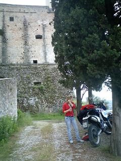 Eccoci a Colonnata per una mangiata coi fiocchi... possibile che hanno tanto lardo da barattarlo con... con le conche? Approposito... che pranzi, che cene... e che vini!!! Ecco una foto da mandare a motociclismo... divieto da entrambe le parti, ma cartelli che ti mandano in quella direzione... POSSIBILE??? Il bellissimo castello dei Malaspina a Fosdinovo... Coi suoi fantasmi, i suoi letti col cuore che batte e...