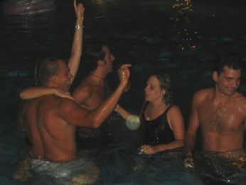 Stasera ho tradito il BANALE per il PAPESSA. Dovevo andare ad un complenno, pizza insomma non tanto buona, bibite ... le solite. Musica non tanto bella e soprattutto pochissima gente che ballava. La cosa bella: LA PISCINA . Morale della favola ??? ORE 3:30 tuffo vestito in piscina, ovviamente avevo solo i jeans....l’acqua era favolosa.... e con me anche 3 amiche di cui 2 erano le festeggiate del compleanno.