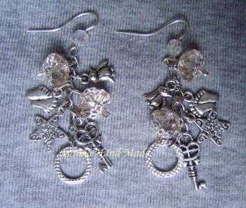 E gruppo di charms dargento e simil perle sfaccettate, indossati ondeggiano a ogni minimo movimento. Circa 4 cm