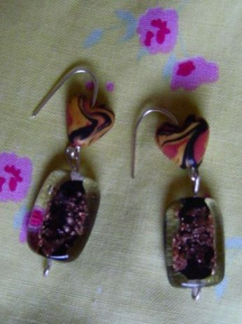 Con gli orecchini mi sono più sbizzarrita, stavolta ho fatto io anche le monachelle (i ganci per appenderli alle orecchie), un paio con gli svarowskini intonati e laltro con dei cuoricini variegati