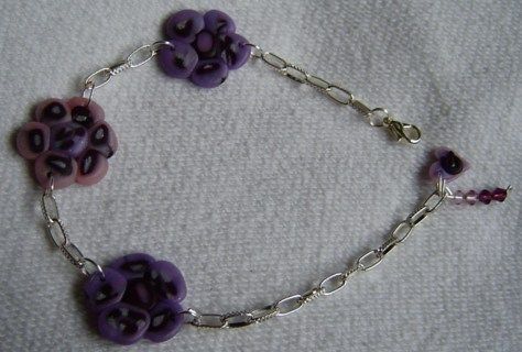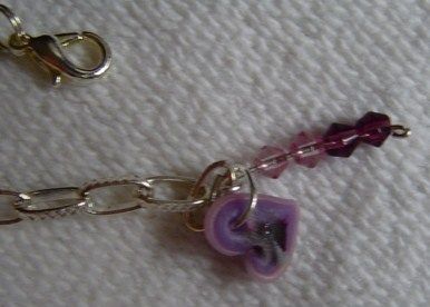 ovvero braccialetto in catenella argentata con fiori in cernit (primo esperimento murrinoso), charm cuoricioso con iniziale e pendente di perline