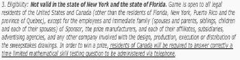 "i residenti in Canada dovranno rispondere correttamente ad un problema matematico a tempo, sottoposto al telefono, per poter ritirare il premio"Eeeeh?!?