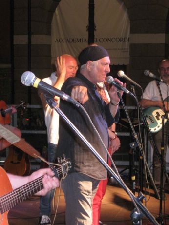 Per una serie di circostanze che si sono allineate positivamente tra loro, ha fatto sì che la serata andasse per il verso giusto, ovvero, il clima tiepido che ha coinvolto amici, fans e pubblico in genere ad accorrere numerosissimi ad ascoltarci; l’ottima forma vocale dei tre cantanti (Giorgio, Ines e me medesimo) ed i musicisti in stato di grazia, infine, l’audio settato in maniera perfetta all’esterno e soprattutto sul palco che ha dato modo si sentirci a nostro agio grazie al nostro nuovo bravo fonico, Enrico, che ha già lavorato con me ai Musical e con i Wooden Ships alla Guizza, per cui sapevo che questo ragazzo dall’aria mite è una garanzia.
