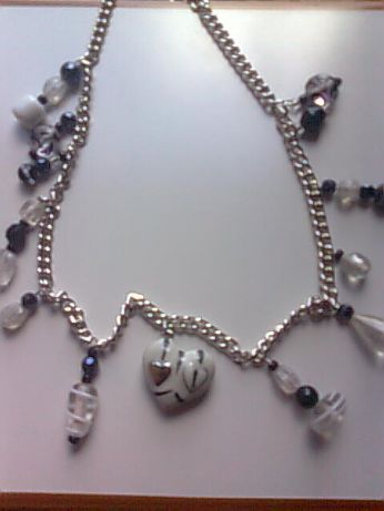 collana ciondolosa con varie perle e cuore smaltato bianco e nero
