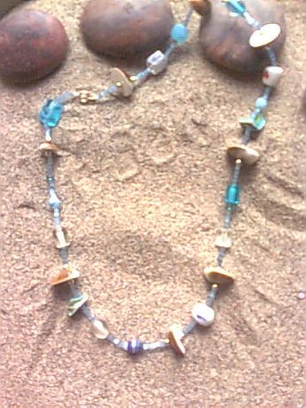 collana conchigliosa... con perle d vetro azzurre e cocci di conchiglia.