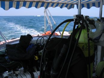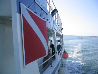 la barca e la bandiera di segnalazione subacquei