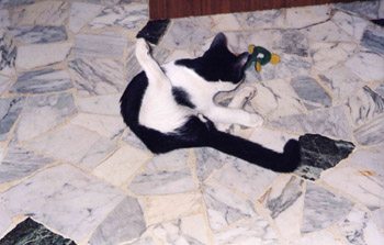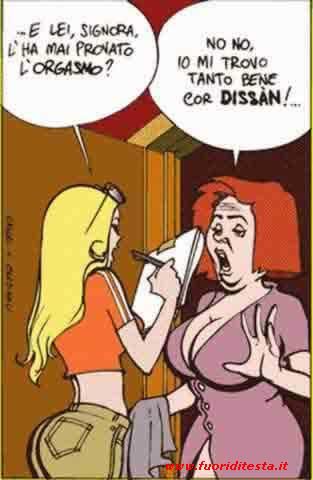 ![]() La foto qui sotto è opera di NINFEA (grandeeeee )![]() DICONO DI ME: Tu sei un libro aperto. Però al contrario. il mio amico Emiliano Sezione FRASI DELLA SHAULA: Io che un libro di trenta pagine lo riassumo in quaranta. per gentile richiesta della Lisaè I tramezzini di San Leonardo si presentano sotto le mentite spoglie di tramezzini. ...ho riso per 5 minuti, ed ero in biblioteca Ma chi può dire di non essere stato felice, se credeva di esserlo. Shaula versione filosofa. Scusate, vado a completare il mio pezzo sulla mostra bovina. Entrare nel mondo della zootecnia era il mio sogno nel cassetto. Vi ricordo che studio arte. Grazie. Micidiale ![]() FRASE LETTA SU INTERNET: "Te lo do subito" è lectio difficior" ![]() ![]() VARIE: Ceres-Jeff 1-0 ![]() ![]() ![]() ![]() e LINK PERMANENTE ALLA NUOVA VELINA: La Shaula bionda! Accorrete numerosi! ![]() ![]() Create your own visitor map! sabato 27 settembre 2003 - ore 18:32 Che palle La permanenza ad Oristano si fa sempre più pallosa e l'angoscia mi attanaglia. Oggi sono anche scivolata in centro con la bici visto che stanno sventrando la piazza. Dio che noia... non c'è nessuno, non c'è niente da fare se non costringersi a studiare controvoglia, e CAZZO mio fratello ora vuole pure che gli lasci il pc!! Non c'è speranza. LEGGI I COMMENTI (2) - PERMALINK sabato 27 settembre 2003 - ore 03:04 Ai confini della realtà Oggi ho pranzato da un mio amico. Dopo il dolce, esco in balcone per arginare l'afa (siamo pur sempre in Sardegna), e noto un cavo bianco e spesso, con 'lestremità scoperta, legato a un perno. Ceres: "Fede cos'è questo?" Fede: "L'antenna della tv" Ceres: "Ah, e non lo colleghi alla presa?" Fede: "... è l'antenna ti ho detto" Ceres(stizzita): "Eh, e non la colleghi alla tv?" Fede: "Non è il cavo, è l'antenna del palazzo! Solo che manca l'antenna... non l'ho mai vista!!" Ceres: "Cioè questo dovrebbe rappresentarmi il trespolo di metallo che di solito sta in cima al tetto?" Fede: "Sì, non so dove sia quello. Quando sono venuto ad abitare qui pensa che penzolava tranquillamente dalla grondaia!" Allegria COMMENTA (0 commenti presenti) - PERMALINK sabato 27 settembre 2003 - ore 02:44 Amenità Vi omaggio di una vignetta spiritosa!! (oggi sono particolarmente rinco) COMMENTA (0 commenti presenti) - PERMALINK venerdì 26 settembre 2003 - ore 13:25 News Scusate ma TANTO PER CAMBIARE ho problemi col pc... solo che quello di casa mia è ancora più chiodo di quella della Virginia!! E non ho neanche Torakiki con cui giocare... ![]() Baci a tutti LEGGI I COMMENTI (4) - PERMALINK giovedì 25 settembre 2003 - ore 15:18 Torakiki revival Ora che ho abbandonato la mia casa alla Guizza ho nostalgia pure del gatto. Dai, vi omaggio di un paio di foto che scattai al felino più intraprendente di Padova Sud. Qui gioca con un peluches in una posizione molto comoda ![]() mentre qui mastica con slancio la spalliera di una sedia ![]() LEGGI I COMMENTI (2) - PERMALINK giovedì 25 settembre 2003 - ore 00:58 Asta Ma porca pupattola!! Proprio adesso che mi è toccato venire in Sardegna mi ammaniscono la mega-asta delle biciclette!!!!!!!! Chi è che domani o dopodomani mi fa il santo favore di andarmi a prendere una mountain-bike da donna? Non spendete più di 40 euro però.Ma cazzarola negra COMMENTA (0 commenti presenti) - PERMALINK mercoledì 24 settembre 2003 - ore 15:30 Trip Credevate che fossi partita per la Sardegna eh? E invece no! In realtà sono sempre alla Guizza, nascosta nella cantina della Virginia, e scrivo sul blog con la forza del pensiero. ... "su dai Sabina, non fare così... l'infermiere non vuole farti del male, suvvia lascia che ti metta questa bella camiciuola!" "Ma non ha le maniche un po' lunghe?" "Eh la moda quest'anno... vedi, si usano anche le cinghie... dai che andiamo a fare un giretto con questo bel furgoncino!!" VVVVVRROOOOOOOOOOOOOMMMM (l'ambulanza portò Sabina alla neuro, ove le venne praticato un leggiadro intervento di lobotomia) ehm... ...al momento sono sazia, lavata, profumata e in calzoncini inguinali+canottierina. Qui ci sono almeno 27 gradi e sto seriamente pensando di passare il pomeriggio al mare. Ma passiamo alla narratio del mio trip: sveglia (3 sveglie, per essere precisi) alle sei; scene di equilibrismo con le valigie e arrivo, più o meno precario, alla fermata dell'8. Attimi di commozione nel vedere Prato della Valle con la nebbia (è sempre una bella vista), altri attimi di rottura di coglioni nel constatare che a Verona diluvia (addio giretto turistico). Sbolognati i bagagli alla check-miss, esplorazione dei negozietti aeroportuali: pennine, magliettine, mazzi di carte, berrettini delle squadre di Formula1, tanga commestibili... ...TANGA COMMESTIBILI???? Li vendono anche in aeroporto? Spogliarello al controllo di sicurezza: le mie Cult sono troppo piene di metallo e mi tocca levarmele. Contenti loro! Comunque il tempo da cani agevola il sonno e, visto che mi sono svegliata alle sei con la nebbia e dopo 4 ore scarse di sonno (purtroppo non a causa del tanga commestibile), approfitto del volo di 1 ora e 20 per ronfare allegramente. Aeroporto di Cagliari: LA SAUNA. Gradi 27 all'ombra, senza un filo di vento. Mio fratello giunge con 3/4 d'ora di ritardo e mi fa fare tutto il viaggio a finestrini chiusi (e non ha l'aria condizionata). Naturalmente io ero vestita in pieno stile da clima patavino, e quindi maglia a maniche lunghe/jeans/calzettoni/Cult; non potendo sottoporre mio fratello alla esposizione delle mie nudità, opto per il bagno turco fuori programma. PRANZO: una roba semplice. Pasta al burro, orata al limone, coniglio con funghi. Praticamente con la "dieta" che stavo seguendo a Padova sembrava un pranzo da matrimonio. E ora sono qui, a litigare col computer terribilmente lento e col mouse inchiodato. Morale della favola: chi lascia l'ADSL a sbafo per il 56K a pagamento non è sano di mente. Pensiamo agli esami va'... LEGGI I COMMENTI (4) - PERMALINK martedì 23 settembre 2003 - ore 15:44 Si 
