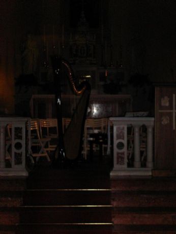Lavoro al mattino a Godego e concerto la sera a Casteo. Ho fatto una bella dose di palestra caricando e scaricando due arpe. Comica la scena in cui io e Antonella abbiamo fermato tutti i ragazzini per strada e ci siamo fatte aiutare a scaricare dalle macchine le arpe. Sono andata a nanna stamattina alle 3 e mezza dopo aver sistemato tutto. Con mia mamma abbiamo portato l’arpa a casa, il che vuol dire fare 70 scale senza ascensore con 50 chili circa di arpa...
