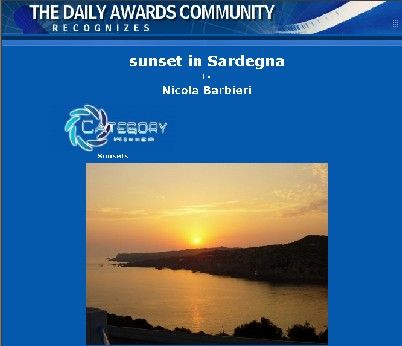 Oggi hanno premiato anche un’altra mia foto... "Sunset in Sardegna"... sempre più felice!!!