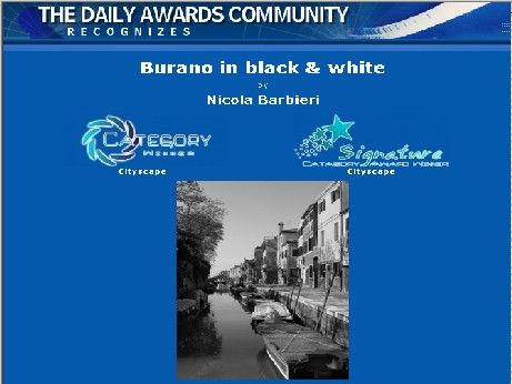Oggi ho vinto un premio in un sito americano dove dei fotografi professionisti e non pubblicano le loro foto...per quanto sia un riconoscimento virtuale, é pur sempre un premio e quindi la soddisfazione di vedere una mia fotografia premiata tra tante mi rende davvero contento!