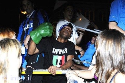 Scusate per il ritardo ma gli ultimi due giorni sono stati a dir poco intensi. Ma tanto non cambia niente perchè la storia ormai è scritta. L’ Inter è CAMPIONE D’ITALIA!!! Allo stesso modo non sarebbe cambiato niente se avessimo vinto il titolo contro la Roma. Anzi, forse sì! Perchè nessuno si aspettava di vincere lo scudetto domenica e nella vita le gioie più grandi sono quelle inattese! E così nulla era stato preparato per la festa ed è nato tutto spontaneamente e in queste occasione è molto meglio così! Ho assistito a scene che non hanno prezzo: all’improvviso mi sono ritrovato abbracciato a gente che non avevo mai visto in vita mia, si percepiva nell’aria uno spirito di aggregazione impagabile e ho trascorso momenti indimenticabili assieme ad amici e alla mia famiglia unita in questa grande gioia. Le emozioni che ho provato sono indescrivibili ma è doveroso un omaggio a chi ha reso possibile tutto questo. GRAZIE INTER!!!