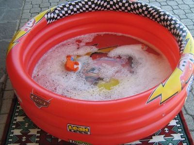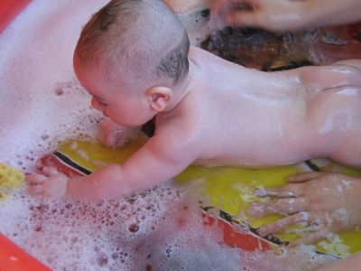 abbiamo messo giacomino in piscina...