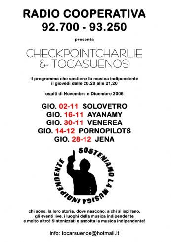 stasera, per chi non sa come passare il tempo, a radio cooperativa ci siamo noi, JENA, ad occupare per unora la trasmissione a radio cooperativa..