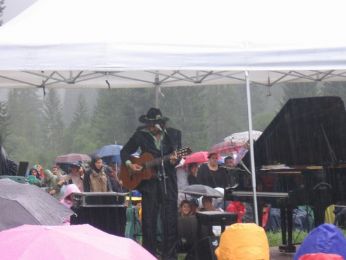 Lo scenario era quello delle Dolomiti, il meteo ci aveva regalato il classico acquazzone estivo (in montagna sembrano sempre interminabili) per poi bruciarci a un sole che sembrava essere là a pochi metri dalle nostre teste; i numerosi fans raccolti in un teatro naturale a dir poco unico avevano sopportato eroicamente la pioggia per poi esplodere in danze e canti insieme ai caldi raggi solari, ebbri di musica, di alcol, di fumo...di Vinicio.