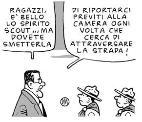 venerdì 3 agosto 2007 - ore 06:29 sulle vacanze E’ importante vivere un tempo dove sono io stesso che ordino le mie attività. Sì, perchè tutti abbiamo dei programmi non stesi personalmente, ma che sono il risultato di attese altrui, richieste, necessità. Le vacanze sono il contrario di tutto questo, c’è spazio per riflettere liberamente e con tranquillità sulla vita. E magari aggiungiamo anche la possibilità di muoversi un po’ di faticare fisicamente. Giovanni Giudici COMMENTA (0 commenti presenti) - PERMALINK giovedì 2 agosto 2007 - ore 22:08 sorriso ![]() L’ho prelevata dal blog di ecce_ . Un sorriso che va oltre le complicazioni politiche, credo non guasti la serietà dell’evento di ieri 1/8. LEGGI I COMMENTI (1) - PERMALINK giovedì 2 agosto 2007 - ore 21:44 cristiani nel mondo È un dato di fatto che non c’è più una civitas cristiana, che il modello medievale di civitas cristiana non vale per il momento attuale. Forse qualcuno non se n’è ancora accorto, ma i cristiani vivono nel mondo tamquam scintillae in arundineto, come scintille sparse in un campo. Viviamo nella diaspora. Ma la diaspora è la condizione normale del cristianesimo nel mondo. L’eccezione è l’altra, la società completamente cristianizzata. Il modo ordinario di essere nel mondo dei cristiani è quello descritto già nella Lettera a Diogneto, del secondo secolo. I cristiani non abitano città proprie, né usano un gergo che si differenzia. Vivono nella loro patria, ma come forestieri; partecipano a tutto come cittadini e da tutto sono distaccati come stranieri. Ogni terra straniera è patria loro, e ogni patria è straniera. Godfried Danneels COMMENTA (0 commenti presenti) - PERMALINK giovedì 2 agosto 2007 - ore 06:31 a margine della giornata di ieri Sono almeno 38 milioni gli scout in tutti i paesi riuniti sotto le insegne di WOSM e WAGGS, l’associazione femminile. Lo scoutismo è l’unica associazione giovanile che negli ultimi 15 anni ha visto raddoppiare i propri iscritti, ed è assente solo nella Repubblica Popolare Cinese, a Cuba, nel Laos, in Corea del Nord e in Birmania. Sono stati scout quasi tutti i membri del Congresso degli USA, metà dei ministri francesi e degli amministratori delegati delle multinazionali svedesi. Gli scout italiani sono oltre 200mila: praticamente ogni famiglia ha un parente o un amico scout. Carla de Girolamo su Panorama del 14 giugno 2007 l’articolo completo COMMENTA (0 commenti presenti) - PERMALINK mercoledì 1 agosto 2007 - ore 21:32 legge scout ![]() La legge scout comprende dieci articoli, che sono redatti in forma positiva, mentre non c’è nessuna legge negativa. La legge positiva significa, in sostanza, rendere servizio. B.P. AGESCI: La Guida e lo Scout: 1. pongono il loro onore nel meritare fiducia 2. sono leali 3. si rendono utili e aiutano gli altri 4. sono amici di tutti e fratelli di ogni altra Guida e Scout 5. sono cortesi 6. amano e rispettano la natura 7. sanno obbedire 8. sorridono e cantano anche nelle difficoltà 9. sono laboriosi ed economi 10. sono puri di pensieri, parole e azioni CNGEI: 1. La parola dell’Esploratore/trice è sacra 2. L’Esploratore/trice è leale, forte, coraggioso/a 3. L’Esploratore/trice è buono e generoso 4. L’Esploratore/trice è amico/a di tutti e fratello / sorella di ogni altro/a Esploratore o Esploratrice 5. L’Esploratore/trice è cortese e tollerante 6. L’Esploratore/trice rispetta e protegge i luoghi, gli animali, le piante 7. L’Esploratore/trice è coscientemente disciplinato/a 8. L’Esploratore/trice è sempre sereno/a anche nelle difficoltà 9. L’Esploratore/trice è sobrio/a, economo/a, laborioso/a, perseverante 10. L’Esploratore/trice è puro di pensieri, corretto nelle parole e negli atti La legge scout contiene le regole di vita seguite da tutti gli scout del mondo, essi si impegnano ad osservarla al momento della Promessa scout, essa è sempre espressa in chiave positiva (lo scout è, lo scout fa) e mai con divieti (lo scout non è, lo scout non fa). Come la Promessa scout anche la legge venne istituita dal fondatore dello scoutismo Robert Baden-Powell, nel tempo ogni associazione ha rielaborato la legge scout originaria mantenendone tuttavia lo spirito fondamentale. ![]() COMMENTA (0 commenti presenti) - PERMALINK mercoledì 1 agosto 2007 - ore 19:30 promessa CNGEI ![]() PROMETTO sul mio onore di fare del mio meglio per: • compiere il mio dovere verso Dio, la Patria, la famiglia; • agire sempre con disinteresse e lealtà; • osservare la Legge scout. Buona strada COMMENTA (0 commenti presenti) - PERMALINK mercoledì 1 agosto 2007 - ore 13:35 promessa AGESCI ![]() Con l’aiuto di Dio, PROMETTO sul mio onore di fare del mio meglio: • per compiere il mio dovere verso Dio e verso il mio Paese • per aiutare gli altri in ogni circostanza • per osservare la Legge scout. Buona strada ![]() LEGGI I COMMENTI (1) - PERMALINK mercoledì 1 agosto 2007 - ore 06:20 alba del centenario ![]() Al levar del sole del primo agosto 2007, lo scoutismo entrerà nel suo secondo secolo di vita .Quando i primi raggi del sole batteranno sulla pietra che a Brownsea ricorda il primo campo scout della storia, iniziato appunto l’1 agosto 1907, in tutto il mondo sarà L’ALBA DEL CENTENARIO. Tutti gli scouts e le guide del mondo, assieme a tutti coloro che nella loro vita hanno pronunciato la Promessa Scout, sono invitati a rinnovarla alle 8.00 del mattino del 1 agosto 2007 . Secondo i fusi orari dei diversi paesi della Terra dunque, l’intera giornata del 1 agosto sarà scandita da migliaia di cerimonie dell’alba che si svolgeranno in tutti i paesi del mondo ed, in ciascun paese, ovunque vi sia un gruppo o unità di scouts che rinnovano la loro Promessa. Altre curiosità in merito: qui Buona strada COMMENTA (0 commenti presenti) - PERMALINK martedì 31 luglio 2007 - ore 12:52 interrogativo Dopo Piergiorgio Welby, anche la morte di Giovanni Nuvoli è stata ampiamente resa pubblica: f