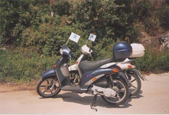 giovedì 19 agosto 2004 - ore 00:51 Ed ecco qui le foto della nostra vacanza! Ci ho messo una botta di tempo x caricarle con lo scanner... forse è il caso che mi decida a comprare 'sta cazz di fotocamera digitale...![]() emiglino sul traghetto in partenza da Venezia ![]() cherry-lyn sul traghetto in partenza da Venezia ![]() I nostri mitici Liberty 50 ![]() ![]() L'arrivo della fiaccola olimpica a Sivota ![]() emiglino & cherry-lyn con la fiaccola olimpica ![]() cherry-lyn sul materassino ![]() cherry-lyn stile sirenetta ![]() ![]() cherry-lyn sullo scoglio ![]() emiglino dopo una bella doccia rinfrescante ![]() Veduta di Parga ![]() Panorama dalla fortezza veneziana di Parga ![]() emiglino sorge dalle acque ![]() ![]() cherry-lyn a Kerkira ![]() emiglino & cherry-lyn a Kerkira ![]() Il tempio dedicato a San Giorgio a Kerkira ![]() Tramonto sul porto di Igoumenitsa Ok, forse ne ho messe un po' troppe... cmq spero vi siano piaciute! LEGGI I COMMENTI (12) - PERMALINK martedì 17 agosto 2004 - ore 13:07 Rieccomi a casa! Vi sono mancato in queste 2 settimane? Purtroppo non ho potuto aggiornare il blog mentre ero a Sivota (come avevo fatto a suo tempo x il viaggio in Liguria) xché nel paesino sulla costa dell'Epiro dove siamo stati non c'erano internet points... cmq un po' di disintossicazione dalla tecnologia non guasta, dato che ho usato pochissimo il cell e guardato la tv quasi x niente... avrei voluto scrivere qualcosa il giorno della partenza, il 2 agosto, ma disgraziatamente quella mattina il sito era in down.Quel giorno sono partito da Montegrotto x raggiungere Ingrid a Padova e insieme, in sella ai nostri Liberty, ci siamo diretti verso Venezia x prendere il traghetto x la Grecia. La traversata è durata un giorno intero, notte compresa: memorabile il nostro look "derelicte" (cit. Zoolander - solo x intenditori ) appena svegli dopo aver dormito sul ponte... arriviamo a Igoumenitsa nel primo pomeriggio del 3 e dopo 20 km di strada costiera siamo nel nostro paesino. L'appartamento che abbiamo prenotato è un bilocale ampio e dotato di cucina, bagno e aria condizionata: non abbiamo la vista sul mare ma siamo circondati da ulivi secolari... le cicale friniscono senza sosta ma ci abitueremo presto al quel suono, al punto che ora casa mia sembra incredibilmente silenziosa... il paese è quasi come lo ricordavo 3 anni fa: hanno aperto nuovi negozi e baretti sul porticciolo e costruito nuovi appartamenti nell'interno, ma nel complesso il posto è rimasto uguale. Senza scendere nei particolari di quello che abbiamo fatto ogni giorno, vi racconto la nostra giornata tipo: sveglia + o - a mezzogiorno, colazione con cornetti dolci o morbidissime tiropitakias salate (specie di sfogliatine ripiene di salsa alla feta) e yogurt greco col miele. Poi nel pomeriggio spiaggia (ne abbiamo cambiata una al giorno, da quelle + affollate come Mega Ammos, Karavostasi e Agia Paraskevì a quelle + tranquille come Zeri Beach e altre spiaggette i cui sentierini di accesso sono imboscati nella vegetazione...) a bordo dei nostri inseparabili motorini. La sera si cenava con una pitta gyros (una specie di kebab con tzaziki, pomodori, cipolle e patate fritte, veramente buonissimo!), con souvlaki (spiedini di maiale) o paidakia (costolette di agnello). Immancabile anche la koriatikì, la famosa insalata greca, la melinzanosalada, la taramosalada e le varie salse tipiche della cucina greca, magari accompagnate da una buona boccia di retsina o un bicchierino di ouzo. ![]() Il 6 di agosto nel primo pomeriggio è arrivata la fiaccola olimpica! Un gruppo di maratoneti rigorosamente in divisa targata Atene 2004 scende a Sivota con in mano la torcia accesa (un oggettino vendibile al pubblico al modico prezzo di 350 euri). Abbiamo assistito a una cerimonia in stile antica Olympia con finale musicale (ballerini in costume tradizionale hanno danzato sulle note del sirtaki). A parte questo evento importante, la vita nel paesino scorreva tranquilla, anche se il numero di turisti aumentava man mano che ci avvicinavamo a ferragosto. Sabato 8 abbiamo tirato le 6 di mattina dopo essere stati in una bella disco con tavoli all'aperto, piscina e vista sul mare... abbiamo anche assistito all'esibizione di alcuni tangheri bravissimi.L'11 agosto siamo partiti in mattinata con gli scooters e abbiamo percorso 35 km in una strada tutta curve e saliscendi x arrivare a Parga, un paese + grande di Sivota ma molto caratteristico... le vie strette del centro storico sono piene di negozietti pittoreschi. Risalendo x le stradine del paese siamo arrivati fino alla fortezza costruita dai veneziani. Lungo i sentieri al suo interno c'erano ancora i cannoni x difendersi dai pirati turchi... dall'alto si gode una vista splendida sul paese e sulle spiagge limitrofe. Il 13 abbiamo preso il traghetto x andare a Corfù e visitare Kerkira, il centro + importante dell'isola. La città conserva quasi intatto il centro storico veneziano (la strada principale si chiama "Liston", tanto x fare un esempio). Dopo un giretto per gli innumerevoli negozi di chincaglierie greche in cui Ingrid mi trascina senza pietà, mi vendico portandola con me in un museo dedicato all'arte cinese (cosa c'entri con la Grecia non ne ho idea, suppongo che sia una collezione privata donata al museo) e quindi sulla cima del Palèo Frourio, altra fortezza veneziana piena di scalini e di fichi d'india.Dopo un fastidioso disguido con la tipa dell'agenzia turistica con cui abbiamo prenotato l'appartamento (abbiamo dovuto pernottare in albergo l'ultimo giorno in quanto la stronza aveva concordato l'arrivo di una famiglia di napoletani il giorno prima della nostra partenza), partiamo il 15 mattina e arriviamo a Venezia il mattino del 16. E' stata proprio una bella vacanza, il mare era splendido e i paesini assai graziosi... peccato che non ci siamo abbronzati molto xché andavamo al mare solo nel pomeriggio! Ma la vacanza è vacanza anche x dormire no? Presto metterò un po' di foto, ci vediamo in