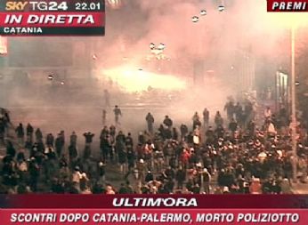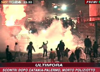 Finisce in tragedia il derby Catania-Palermo. Un agente del reparto mobile della Questura di Catania, Filippo Raciti, 38 anni, ispettore capo, è morto durante gli scontri tra forze dellordine e tifosi del Catania dopo la partita. Lagente è stato colpito al viso da una bomba carta; lascia la moglie e due figli.