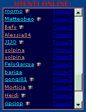 BLOG che SEGUO: Yaku Vampina Solu Leoncina Shaula Chobin MOKI Kiky girella Dott.ssa_I marrabbia micinasly [KBL]sandy Hoppy febe ghirotta minife vane82E61 CatEye ueikap ika80 Col80 Lsdn Zilvio 6estosenso Zampy Calimero Bicio77 25 Biondyno millebirre mr.D gandals lucadido Basaltman AkiraFudo Jashugan Bocio GenjoSanzo IlBello Gino Pongo alex1980pd Viper Edward Mrsick Void Centipede Leonida Goku1977 druido77 BOOKMARKS COVER BAND ZUCCHERO (da Musica / Cantanti e Musicisti ) FREEWAY - cartoons cover band (da Musica / Cantanti e Musicisti ) I BEEHIVE (da Musica / Cantanti e Musicisti ) Elicottero (da PC e Internet / Giochi ) luca e i beehive (da Musica / Cantanti e Musicisti ) DEDICATO ALLA NEVE (da Fotografia / Corsi Online ) I SYNTH STORICI (da Musica / Cantanti e Musicisti ) La mia passione per la meteo (da Scienza e Tecnica / Ambiente ) UTENTI ONLINE: |