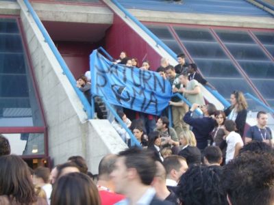 Allentrata dei personaggi di Mediaset, qualcuno diceva delle Iene (che io non conosco...) ci hanno ripreso ed hanno intervistato il direttore, quello vero, visto che avevamo inizialmente spacciato un nostro collega (Deniz) come direttore, e loro ci avevano creduti!