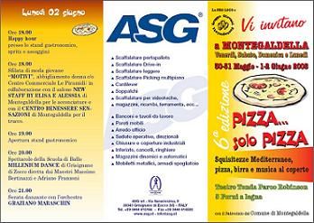 lunedì 14 luglio 2008 - ore 21:38 Omicidio! In questi giorni ho ucciso qualcuno! Ma uccidere non sempre è una cosa negativa, dipende dal significato che ha! LEGGI I COMMENTI (9) - PERMALINK mercoledì 4 giugno 2008 - ore 22:02 Festone finito!!! Festa finita!!! Fatte più di 3000 pizze e bevuti più di 1100 litri di birra!!!! Per non parlare del vino e delle innumerevoli bottiglie di grappette fruttate!!! Se non ceri mi dispiace!!! sarà per il prossimo anno!!!! LEGGI I COMMENTI (1) - PERMALINK sabato 24 maggio 2008 - ore 18:33 6° edizione della Festa della Pizza organizzata dal Gruppo Giovani Protagonisti in collaborazione con la Pro Loco Anche quest’anno vi proponiamo uno stand gastronomico rinnovato con la possibilità di ospitare ben 800 persone. Il palco per la musica dal vivo e la pista da ballo ampliata sono collocati in uno stand al coperto e separato rispetto all’area di degustazione. Ogni sera sarà attivo il bar per l’angolo giovani con Happy hour e vasta degustazione di grappe Casa Marzadro!!! Vi aspettiamo numerosi!!!!!!!!!! Venerdì 30 maggio Ore 19.00 Apertura stand gastronomico Ore 21.30 Musica dal vivo con le ANIME IN PLEXIGLASS Cover Band del mitico Ligabue Partecipazione del Gruppo Emergency di Vicenza Sabato 31 maggio Ore 18.00 Happy hour presso lo stand gastronomico, spritz e assaggini Ore 19.00 Apertura stand gastronomico Ore 22.00 A gran richiesta riproponiamo una serata di musica all’insegna del divertimento con la FREEWAY Band Cartoons Cover Band Partecipazione del Gruppo Emergency di Vicenza Domenica 01 giugno Ore 18.00 Happy hour presso lo stand gastronomico, spritz e assaggini Ore 19.00 Apertura stand gastronomico Ore 21.30 Musica dal vivo con i GORDON Cover Band dei Nomadi Lunedì 02 giugno Ore 18.00 Happy hour presso lo stand gastronomico, spritz e assaggini Ore 18.00 Sfilata di moda giovane “MOTIVI”, abbigliamento donna c/o Centro Commerciale Le Piramidi; in collaborazione con il salone NEW STAFF BY ELISA E ALESSIA di Montegaldella per le acconciature e con il CENTRO BENESSERE SENSAZIONI di Montegaldella per il trucco. Ore 19.00 Apertura stand gastronomico Ore 20.00 Spettacolo della Scuola di Ballo MILLENIUM DANCE di Grisignano di Zocco diretta dai Maestri Massimo Bertinazzi e Adriano Franzoni Ore 21.00 Serata danzante con l’orchestra GRAZIANO MARASCHIN COMMENTA (0 commenti presenti) - PERMALINK sabato 24 maggio 2008 - ore 18:12 Venite!!!!! ![]() ![]() Venite!!!!! Non potete mancare! LEGGI I COMMENTI (1) - PERMALINK venerdì 23 maggio 2008 - ore 11:45 ![]() LEGGI I COMMENTI (3) - PERMALINK lunedì 12 maggio 2008 - ore 23:32 pensieri, parole, omissioni... Ciao raga, voi dite sempre quello che pensate, ma sempre sempre sempre? Anche non subito ma dopo giorni o mesi! dite sempre tutto? io penso di si prima o poi lo dico anche se potrebbe rovinare tutto.......notteeeeeeeee! LEGGI I COMMENTI (1) - PERMALINK domenica 11 maggio 2008 - ore 23:14 Dormo sempre.... Salve a tutti! Oggi mentre dormivo ho sognato di pattinare e giocare a frisbie con una persona poco conosciuta. Mi son trovato veramente bene......chissà come stava lei. Poi alle cinque mi son svegliato e tutto era finito! Speriamo di ricominciare.... prima o poi! LEGGI I COMMENTI (2) - PERMALINK sabato 10 maggio 2008 - ore 11:37 PENNE NERE.... Salve, da oggi apro il mio blog! Ieri sera sono tornato alle 3 e qualcosa, sarata molto carina che spererei ripetere molte volte anche di giorno. comunque alla fine ero distrutto, La sera prima avevo dormito 5 ore! OGGI..... alle ore 15 partenza con la compagnia in 2 ruote motorizzate (vespa, scooter, etc) per BASSANO....!!!! Ritorno previsto ma a data e ora da destinarsi!Vi raccontero! LEGGI I COMMENTI (1) - PERMALINK |