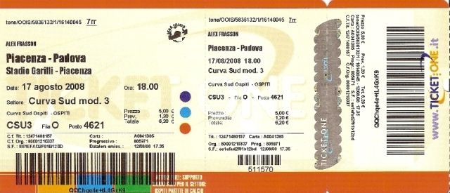E dopo più di due anni ecco il biglietto che mi permetterà di assistere alla mia prima partita ufficiale...