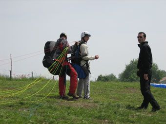 Beh mentre ero in volo le mie preoccupazioni erano: riusciranno le mie due prodi compagne di viaggio a riportare la macchina al punto d’atteraggio? Riuscirò a tornare a Padova giusto in tempo per salutare Donky e compagnia? Per paura di una risposta negativa a quest’ultima domanda non ho esitato un secondo a mettere in atto il seguente piano: mi sono slacciato dall’imbragatura dell’istruttore e, da circa un chilomentro d’altezza, mi sono buttato esattamente verso il campetto in pianura dove, fortunatamente, la mia Fiesta mi aspettava ansiosa. Ho aperto il paracadute e, con stile da perfetto parà, sono atterrato.