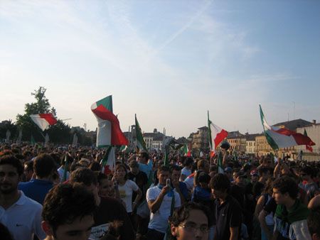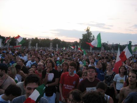 Ammassati davanti al maxischermo in un Prato gremito di gente! Una folla con gli occhi puntati allo schermo, con i battiti del cuori in sincronia, come se ci si conoscesse tutti... lì a tifare per la nazionale, a sperare in una grande festa tutti assieme.