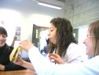 Bhe cmq....noi l’abbiamo anche aspettata circa 15 minuti in classe...poi insomma..vedendo che nn c’era segno k arrivasse...abbiamo pensato bene di lasciargli un "sms" alla lavagna..."Visto il suo ritardo abbiamo pensato di venirla a cercare in bar..." (nel caso fosse li...sapete..)...così siamo andati a fare "lezione"(e potete immaginare di cm sia stata ) di tedesco in bar...(senza la prof logicamente...)