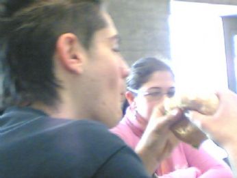 Entro in classe e arriva la Hippy che inizia ad interrogare e devo dire che gli interrogati hanno avuto proprio culo xkè aveva la giornata "buona" tanto che ha messo i voti dal 7 in poi...(forse a Pasqua è stata beccata dallo Spirito Santo, cosa che a noi nn è successa xkè, come diceva il nostro ex prof di chimica:"Tanto a voi lo Spirito Santo non vi becca!!"...)