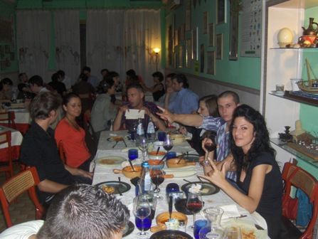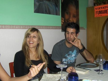 Oh eccomi finalmente a postare il resoconto del week end...poteva forse essere un week end brutto o noioso!!??....ma dddaaaiiii...impossibile...anche perchè la concomitanza del 27 compleanno del caro iccio lha reso ancor più divertente!!ttt è iniziato cn la cena al ristorante eritreo...(già provato in altre occasioni),ma sempre in voga se si vuol fare la cena alternativa!seduti sulla nostra bella tavola cn la fame che mi attanagliava ad ascoltare mezzora di spiegazione sui vari piatti(a che serve poi visto che prendevamo tutto!!!)e finalmente arriva il tanto desiderato cibo:spezzatino di antilope e bisonte,uova di struzzo macinato,crema di ceci e un mucchio di altre cose tra cui sfilacci di manzo tremendamenti piccanti il tutto condito da almeno una 40ina di spezie varie!!!owwiamente mi ingozzo cm di mia consuetudine provocandomi un mezzo infarto accompagnato da una quasi congestione che mi ha fatto stagnare ttt lantilope nello stomaco per quasi ttt la serata!!!interessante labbinamento bisonte-struzzo-vinodeicolli che fa tanto devasto-chic!!ma passiamo a qualche foto dellevento mangereccio: