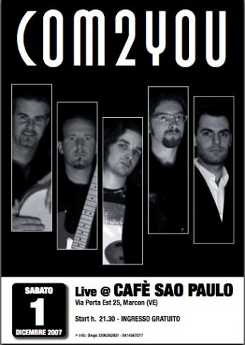 Il diciassette maggio finalmente all’Arghilè di mestre ex Clinic,si esibiranno i "Com 2you"british,dance,pop.Un gruppo di FIOI che aspettavo di vedere dal vivo da tempo,tralaltro oltre ad essere bravi e carini,sono anche simpatici e poi il bassista è Cocketz...