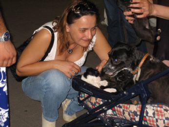 Lungo il nostro pellegrinaggio ci imbattiamo in un uomo col passeggino e nel passeggino ha una cagnolina con una serie infinita di cuccioli. Ci confida che non ha i soldi per farla sterilizzare e che i veterinari non glielo fanno gratuitamente... ci crediamo? Certo che NO. In Italia è diffusissimo l’accattonaggio con animali che, vi assicuro, toccano il cuore più che vedere una mamma con figlio al petto che chiede la carità. Ricordo che questa pratica (con cuccioli) è punita dalla legge e, spesso, gli "accattoni" si disfano dei cuccioli quando crescono perché non fanno più tenerezza. Forse quest’uomo no, ma non lo sapremo mai... lui ci ha assicurato che i cuccioli sarebbero andati a persone fidate, come ogni volta... Io faccio una fatica boia a far adottare dei micini e questo dà via cani a manetta? Boh.