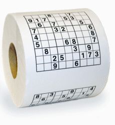 Avete problemi di stitichezza e passate molto del vostro tempo in bagno, e non sapete come ingannare l’attesa?? Da oggi arriva in vostro soccorso la carta igenica con il sudoku incorporato! sudokutoiletbox.Mentre aspettate che i vostri bisogni fisiologici,facciano il loro corso, potete nel frattempo risolvere qualche complicato sudoku! Alla fine di tutto, potrete riutilizzare la vostra amata carta igenica sudoku, per il suo scopo principale : !