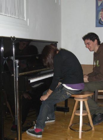 ma passiamo ad altro. stanotte ho fatto un sogno osceno. ero in una specie di spogliatoio con i miei uomini(ahah,si proprio così) e insomma, c’era fek che era più gigante del solito, con gl’occhi di un azzurro intensissimo e le sopracciglia depilate. vabbè-.- a un certo punto, questi, cominciano a limonare duro davanti a me. in particolar modo,ricordo salvo che si limonava manu. osceno. e dico osceno. e io lì a guardarli poi mi son persa a cercare un bagno perchè mi scappava la pipì ma nel frattempo una tipa giappina aveva rubato il cel a zia Temporale. e io devo aver detto una cosa che l’aveva fatta incazzare, al che lei mi guardò malissimo. mi sono svegliata con mia nonna che è entata in camera. grazie nonna.