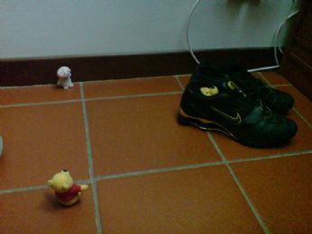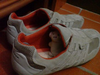 PECCATO CHE BIG SIA RIMASTO INCASTRATO DENTRO LA SCARPA CHE AVEVA SCELTO COME NASCONDIGLIO! E NON RIUSCIVA PIU’AD USCIRE......URLAVA AIUTO!TIRATEMI FUORI! COSI IO E LITTLE SIAMO ANDATI SUBITO AD AIUTARLO........
