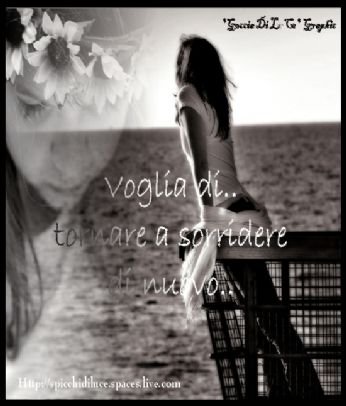 Solo un ultimacosa..mi è capitato piùvolte in questi mesi..di dire basta..di non trovare piula forza di andare avanti..di chiedermi .PERCHE???? PERCHE A ME???...però dai stringero ancora i denti..e spero che prsto un piccolo raggiodi sole..inizi a spuntare..