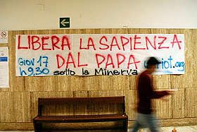 Allora: innanzitutto, come ricordato dal prof. Marcello Cini (uno dei firmatari della lettera a Guarini), l’inaugurazione dell’anno accademico è UN ATTO PUBBLICO, forse il più importante, che riafferma la natura e la funzione dell’università come istituzione di crescita della conoscenza, di formazione della cultura al più alto livello, di uno stato LAICO, democratico e moderno. Invitare un’autorità religiosa, QUALUNQUE ESSA SIA, a partecipare a questo rito laico è, di fatto, una contraddizione in termini. Un tale conflitto istituzionale non richiama affatto la censura! semmai il rispetto della diversità degli ambiti. Nessuno nega che il papa, come professor Ratzinger, sia un professore universitario, intellettuale fine e colto, ma leggendo il testo del discorso (pubblicato ormai su quasi ogni quotidiano)che egli avrebbe dovuto pronunciare durante la sua visita mancata, emerge chiaramente che a presenziare sarebbe stato Benedetto XVI, il leader religioso, e non Ratzinger, il teologo e professore universitario.