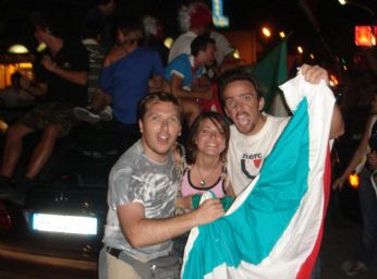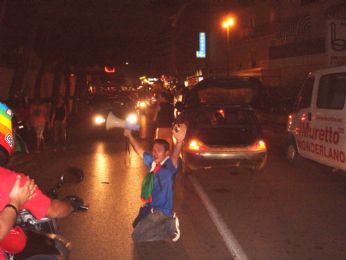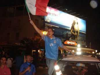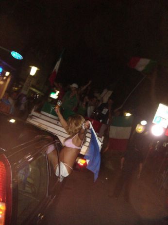 semifinale Mondiale, Grosso manda kaputt la Germania...io e Damiano cominciamo a festeggiare per le vie jesolane... che bordello!!! meraviglioso...mi vien la pelle d’oca mentre scrivo... e non mancano anche qui lieti incontri..ragazze in tricolore che nemmeno conoscevamo...ma la foto ci stava!