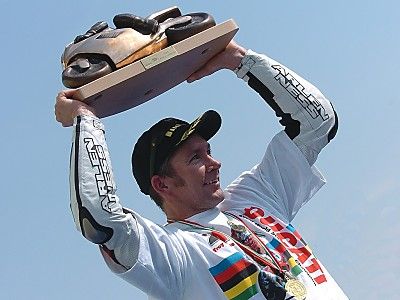 Troy Bayliss (Ducati Xerox) si è laureato Campione del Mondo Superbike per la seconda volta. Nel penultimo round del campionato, che si è svolto sull’Autodromo Enzo e Dino Ferrari di Imola davanti a 86.000 spettatori, il 37enne pilota australiano, già iridato nel 2001, ha conquistato il titolo con il quinto posto in gara 1, vinta da Alex Barros (Honda). Nella seconda gara della giornata Troy è stato al comando dall’inizio alla fine, portando a 11 le vittorie in questa sua straordinaria stagione. Inoltre la vittoria di Bayliss porta a dodici i titoli Piloti vinti da Ducati nel campionato mondiale per le derivate di serie, mentre il discorso per quanto riguarda il titolo Costruttori è ancora aperto quando manca una gara alla conclusone.