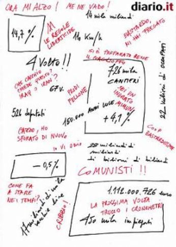 lunedì 20 marzo 2006 - ore 09:31 Il lunedì mattina..... ![]() Si stava tanto bene stamattina a letto..... al calduccio.... La sveglia non ci voleva proprio.... ma nè il lavoro nè luniversità potevano aspettare..... Una bella passeggiatina da casa allUni mi sveglierà.... ho pensato...... E invece....ho fatto tutta la strada..... In trance..... LEGGI I COMMENTI (3) - PERMALINK venerdì 17 marzo 2006 - ore 12:33 Vorrei..... Vorrei tornare a ballare.... Dio quanto mi manca.... e quanto fa male il pensiero di non poterselo più permettere.... Adesso che ho investito tutto sui miei studi toca lasciare nel cassetto un po di sogni..... LEGGI I COMMENTI (2) - PERMALINK venerdì 17 marzo 2006 - ore 10:23 LEGGI I COMMENTI (2) - PERMALINK giovedì 16 marzo 2006 - ore 14:14 ![]() Rivoglio la Primavera.... ma quella di quando ero piccola.... di quando vedevo i primi fiori sbocciare nel cortile della mia scuola elementare.... di quando il pomeriggio andavo in bicicletta nel giardino dei nonni.... di quando il gelato diventava la merenda di ogni pomeriggio.... di quando pensavo che i primi di Giugno la scuola sarebbe finita..... di quando il mio unico pensiero era scoprire prima di tutti le margherite appena sbocciate.... mi manca forse quella serenità.... COMMENTA (0 commenti presenti) - PERMALINK giovedì 16 marzo 2006 - ore 13:55 Berlusconi vs Prodi In esclusiva..... Il foglio su cui Berlusconi prendeva appunti..... COMMENTA (0 commenti presenti) - PERMALINK mercoledì 15 marzo 2006 - ore 12:24 E arrivata lAranciazola! Descrizione: E’ un frutto a pasta molle, erborinato, prodotto con puro succo d’arancia e latte intero. La crosta è dura, ruvida e arancione. E’ un ottimo frutto da tavola e la sua qualità e genuinità sono garantite dal Consorzio per la tutela dell’Aranciazola. Storia: Nato dal piacere del risparmio, la sua origine si fa risalire intorno all’anno 2006, a padova e precisamente nella residenza della signora Aranciazola da cui ha ereditato la denominazione. L’Aranciazola ha ottenuto la Denominazione di Origine nello stesso 2006 ed è poi stato riconosciuto frutto a Denominazione di Origine Protetta. Quesito: si dice: o una fetta di Aranciazola??? LEGGI I COMMENTI (2) - PERMALINK martedì 14 marzo 2006 - ore 14:43 I miei piccinini..... ![]() I miei cuccioli.... ma quanto sono belli?! COMMENTA (0 commenti presenti) - PERMALINK martedì 14 marzo 2006 - ore 14:29 Leggendo.... invisibile nel tuo sogno, seriamente notturna, mentr’io districo le mie preoccupazioni come fossero reti confuse. Assente il tuo cuore naviga pei sogni, ma il tuo corpo così abbandonato respira cercandomi senza vedermi, completando il mio sonno come una pianta che si duplica nell’ombra. Eretta, sarai un’altra che vivrà domani, ma delle frontiere perdute nella notte, di quest’essere e non essere in cui ci troviamo qualcosa resta che ci avvicina nella luce della vita come se il sigillo dell’ombra indicasse col fuoco le sue segrete creature. COMMENTA (0 commenti presenti) - PERMALINK giovedì 9 marzo 2006 - ore 17:17 Oggi,più che mai... ![]() LEGGI I COMMENTI (1) - PERMALINK martedì 7 marzo 2006 - ore 14:48 E stasera..... LEGGI I COMMENTI (2) - PERMALINK > > > MESSAGGI PRECEDENTI |