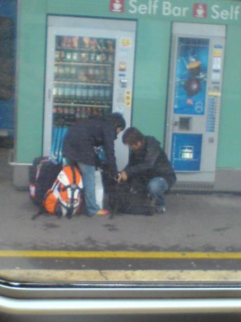 Chi sono? Due giapo-cinesi.. che stavano facendo una cosa che mi ha fatto pensare.. davanti alla macchinetta delle bibite e company hanno inserito i soldi e hanno preso 1 bottiglietta di coca cola.. e poi un’altra, e poi un’altra, e poi un’altra ancora, e poi un’altra.. alla fine avevano tutte le borse e zaini pieni all’inverosimile di coca cola..