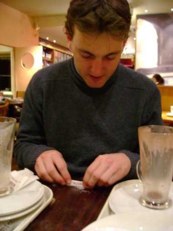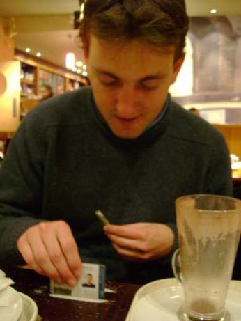 Thomas che si prepara una sana dose di zucchero da tirare....
