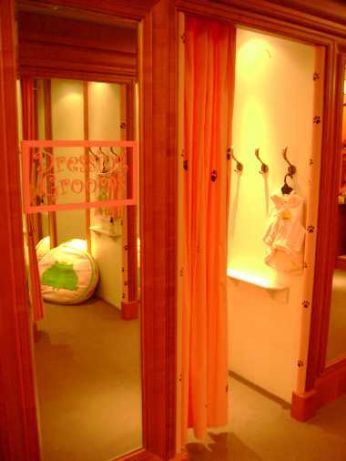 e ovviamente non mancava il camerino dove provare i vestiti ai fidati cagnolini..