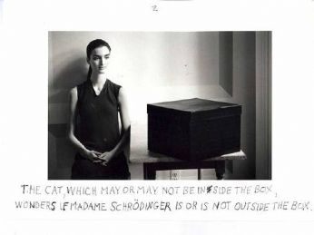 « Si possono anche costruire casi del tutto burleschi. Si rinchiuda un gatto in una scatola d’acciaio insieme con la seguente macchina infernale (che occorre proteggere dalla possibilità d’essere afferrata direttamente dal gatto): in un contatore Geiger si trova una minuscola porzione di sostanza radioattiva, così poca che nel corso di un’ora forse uno dei suoi atomi si disintegra, ma anche in modo parimenti verosimile nessuno; se ciò succede, allora il contatore lo segnala e aziona un relais di un martelletto che rompe una fiala con del cianuro. Dopo avere lasciato indisturbato questo intero sistema per un’ora, si direbbe che il gatto è ancora vivo se nel frattempo nessun atomo si fosse disintegrato. La prima disintegrazione atomica lo avrebbe avvelenato. La funzione Ψ dell’intero sistema porta ad affermare che in essa il gatto vivo e il gatto morto non sono stati puri, ma miscelati con uguale peso.[1] »