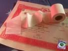 Da notare che non avendo inizialmente carta da regalo (grazie cuGGina) mi son messa a impacchettare con fogli A4 con stampe prese dal web.. e.. tovaglioli porpora dell’Ikea.. sìsì