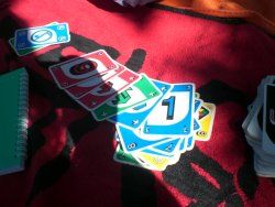 Si opta finalmente per giocare a Uno...dove la Kiara stravince sfoderando una serie di carte fortunelle e io me ne sto sconsolata...(par mì ea gà barà...no xe parmesso...):