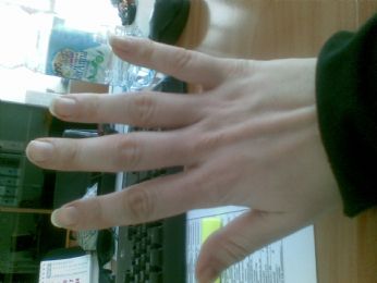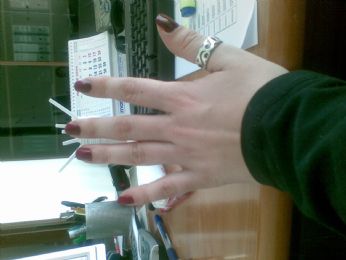Son proprio una lesa! Ho deciso di essere un po più femminile e presa da quel poco lato di femminilità che cè in me ho iniziato a limarmi le unghie e messo lo smalto.... Solo il giorno dopo mi son resa conto della cazzata. Mano sinistra: