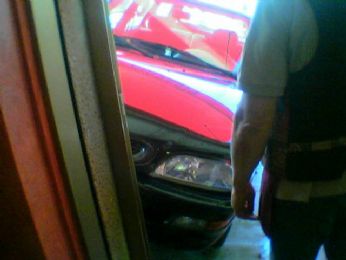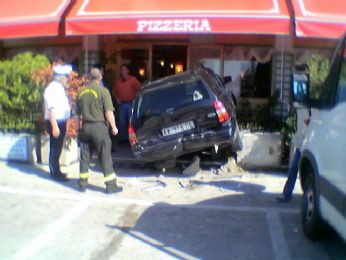 ... la macchina si è fermata a un cm dalla vetrata distruggendo una fioraia e un tavolino dove di solito cè sempre gente (quel giorno fortunatamente non c’era nessuno)....