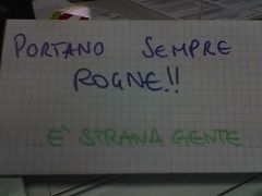 mercoledì 5 luglio 2006 - ore 10:12 A PROPOSITO DI VESPE... ... io sono una di quelle che non sopporta neanche un insetto! nemmeno le farfalle! perkè cazzarola, non è possibile che volino a zig zag! sono proprio fastidiose e ti fanno il pelo ogni volta!!! cmq.. in pratica sono una sterminatrice nata!!! del tipo che faccio le poste alle vespe con il raid e che butto le cimici giù per il water!!! ...cioè ma scusate.. se io la butto fuori magari quella torna.. ma scherziamo??? dopo la sincope che mi ha fatto fare??? (fino all’anno scorso ancora chiamavo la mamma per farle buttare fuori!!!) ..cmq.. ho solo un unico terribile presentimento... che un giorno le cimici si ribelleranno alla mia crudeltà.. e che arriverà un cimicione di dimensioni abnormi.. mi prenderà con la carta igienica.. e mi scaraventerà giù per il water... aggiungendo un bel "muori! stronza!!!" mentre tira l’acqua di gusto.. ...ditemi che è impossibile!!! vi pregooooo!!! non può succedere, vero?!? COMMENTA (0 commenti presenti) - PERMALINK martedì 4 luglio 2006 - ore 12:51 ATTENTATO AL BASILICHINO!!! beh.. ieri sera cera una vespa di quelle con le gambe lunghe che continuava a bazzicare vicino alle piante in terrazzo... mia mamma con sguardo atterrito si gira dicendo "che stia attentando alla vita del basilichino???" (n.d.a.: basilichino = basilico cucciolo con diametro della foglia di 1 cm!).. e morale della favola mi ha messa per mezzora di guardia alla piantina con lo spruzzatore con cui dovevo tentare di annegare la vespa ogni volta che tornava!!! LEGGI I COMMENTI (6) - PERMALINK venerdì 30 giugno 2006 - ore 11:50 ..I QUESITI DELLA PAPEZ.. ma perchè... il telefono senza fili si chiama così se è costituito unicamente di due barattoli... e.. ..un filooo??? LEGGI I COMMENTI (1) - PERMALINK mercoledì 28 giugno 2006 - ore 11:33 SETTIMANE.. DA PAURA.. Non ci posso credereeeee!!! Due gocce di pioggia! Le ho sentite! Aaah... ke refrigerio... ormai penso che la mia sia l’unica famiglia che riesce a sopravvivere (a stento) senza l’aria condizionata!!! E poi la papez è ancora più meritevole di ammirazione perchè è sopravvissuta a: 1) due settimane senza mamma (e papà) e con il fratello che si ritrova.. 2) la vicina che le fa le poste!!! incredibile: ogni volta che ero sulle scale di casa lei magicamente veniva sul pianerottolo! O se davo l’acqua ai fiori del giardino mi sbucava da dietro tipo psyco.. e una volta mi ha pure vista da giù mentre io ero dentro in cucina, attraverso la porta della terrazza.. e mi ha chiamata!!! Aaah!!! 3) la mia indigestione di gelato.. mezza vaschetta un giorno e mezza il giorno dopo! Ma cazzo! Il gelato del prix che ho scoperto è la fine del mondooo!!! 4) un’ustione di 8° grado per essere andata a prendere il sole per un’ora e mezza sul terrazzone sopra casa mia.. un’ora e mezzaaa!!! 5) visione pseudo-consecutiva di serie 1 + serie 2 di OC in dvx 6) rottura della lavatrice con conseguente allagamento del bagno e accumulo sovrumano di vestiti da lavare 7) visione della partita Italia-Australia con addosso maglia + calzini (sporchi.. vedi punto 6!!!) dell’Italia anche se in casa mia c’erano milioni di gradi (farenheit) e l’avrei guardata più volentieri in topless... ma la scaramanzia è scaramanzia!!! ..e fatemi i complimenti.. perchè in tutto il giardino.. si è seccata una pianta sola!!! Grande Papeeez!!! LEGGI I COMMENTI (3) - PERMALINK domenica 11 giugno 2006 - ore 13:46 IL BATTUTONE DELLANNO!!! ieri, tornati dalla casa gialla, stavo riflettento a voce alta con il mio orecchio di fiducia (il mezzo tedesco mezzo moldavo) e pensavo a che cavolo di lavoro fanno i due tipi che ci sono allippodromo che passano le loro giornate a spalare cacca!!! cioè.. questi passano una intera mattinata ad andare davanti a cumuli di cacca con questo camion con il braccio meccanico e prendono la cacca e la mettono nel camion.. tutta la mattina così!!! e pensavo.. pensa che palle fare un lavoro del genere per tutta la vita.. spalare cacca... e pierxxx mi fa "pensa a cosa diranno loro quando ti vedono... pensa che palle tutte le mattine andare in posta.. a fare la coda.. almeno noi spaliamo cacca!!!" ...buaaaaaaaaahahaha!!! LEGGI I COMMENTI (5) - PERMALINK giovedì 8 giugno 2006 - ore 12:58 MA ALLORA E’ UN CIRCOLO VIZIOSO!!! oggi sono in treno che torno dall’esame.. mi correggo.. dalla milionesima volta che provo a fare l’esame di matematica... e nei sedili a fianco si siede un tipino.. che si vedeva lontano un miglio che sarebbe potuto essere mio figlio!!! cmq!!! vede che sto leggendo il quaderno di mate (per vedere se mi ero INVENTATA giusta un esercizio.. ) e mi fa: lui "maaa.. hai dato l’esame di matematica oggi?!?" e io gli dico "sì!!! ma dai.. anche tu???" e lui "no..no.. io l’ho già dato.. e come ti è andato?" e io "eh non so.. (gli spiego un po’ quello che ho fatto).. ma ormai l’ho fatto mille volte quindi spero sia la volta buona.." e lui (pensando che il mio fosse un modo di dire..) "ahah.. ma dai tranquilla.. pensa che c’è gente che l’avrà fatto 6 o 7 volte..." CAZZO!!! SONO UNA DI QUELLE!!! MI HA SCAMBIATO PER UNA SUA COETANEA.. LO SAPEVO.. NON SI E’ ACCORTO CHE SONO AL MILLESIMO ANNO FUORI CORSO.. SSST.. TACERE SEMPRE!!! io "ma dai... pensa un po’.." poi comincia tutta una digressione sulle propedeuticità degli esami e su quali gli mancano, su che libri usa, sulla copertina del libro di privato, sui prof, su mate due... insomma un pozzo senza fondo!!! e il bello è che mi parlava proprio come se stesse pensando che io fossi tipo al secondo anno!!! mi diceva "perchè sai.. aziendale è propedeutico per questo e per quello..." MA INSOMMA!!! SONO DUEMILA ANNI CHE SONO LI!!! PRATICAMENTE CA FOSCARI L’HO FONDATA IO! IO SONO CA FOSCARI!!! (e sono un’icona.. non dimentichiamocelo..) ..insomma..ogni anno che passa sembro sempre più giovane.. ..ho capito.. l’elisir dell’eterna giovinezza è il CAPPUCCINOOO!!! eheh! ![]() tra l’a